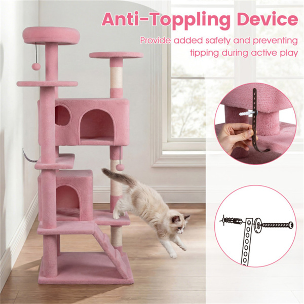 52" Tall Cat Tree Tower With Perches & Condos, Multi-Cat Playground With Scratching Posts (Pink)